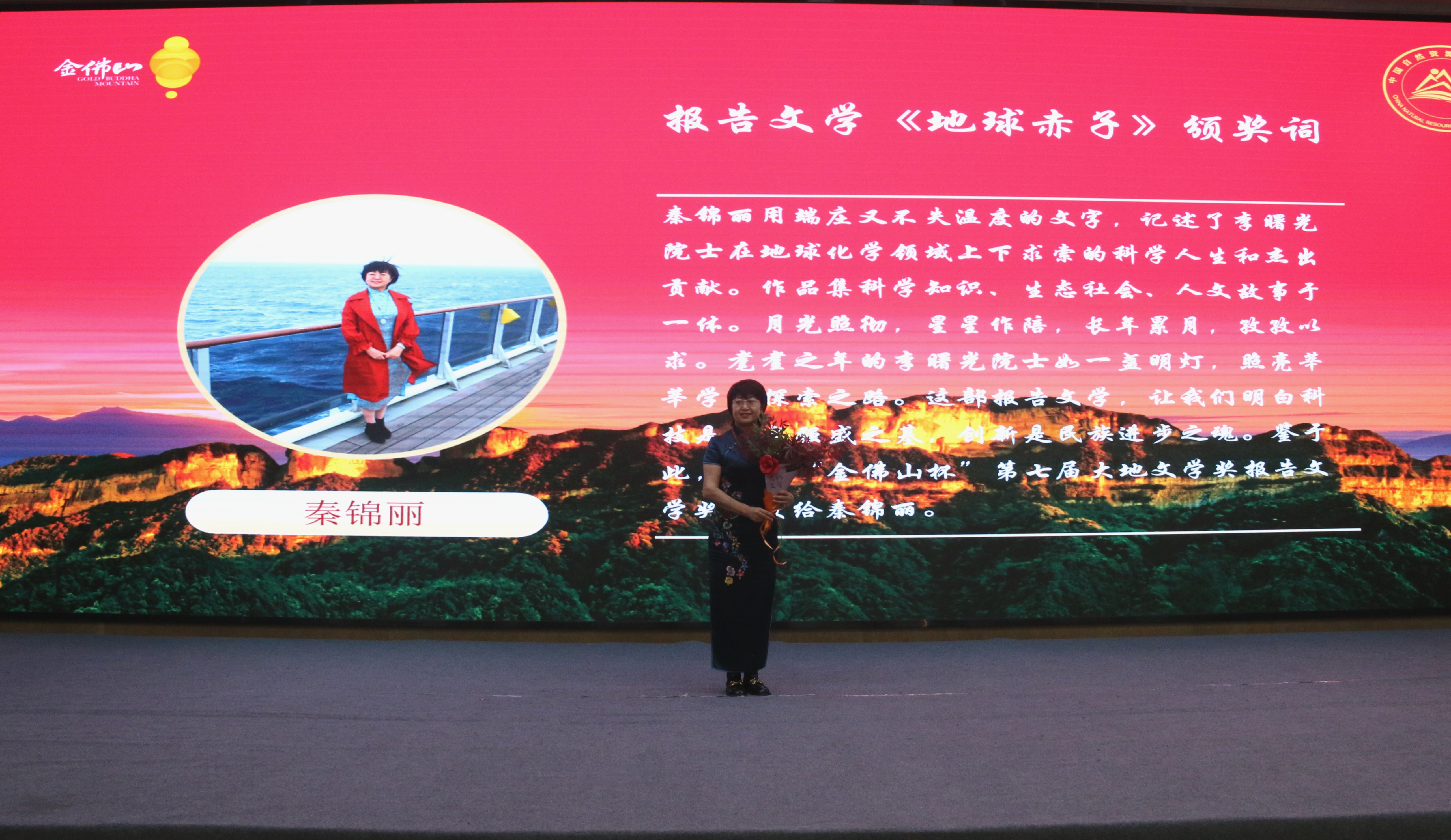 中國甘肅網(wǎng)4月28日訊 4月25日,“金佛山杯”第七屆大地文學獎頒獎暨金佛山中國自然生態(tài)文學創(chuàng)作基地授牌儀式在重慶市南川區(qū)舉行。甘肅作家秦錦麗獲“金佛山杯”第七屆大地文學獎報告文學獎。