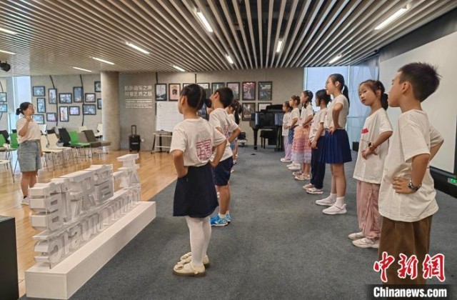 寧波圖書(shū)館的“天一童藝”公益項(xiàng)目現(xiàn)場(chǎng),孩子們跟著老師學(xué)唱由《千字文》改編的歌曲?!≈行戮W(wǎng)記者 應(yīng)妮 攝