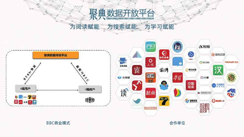 聚典平臺(tái)的核心邏輯是:優(yōu)選并整合權(quán)威的語詞、百科等各類工具書資源,將其內(nèi)容顆?;庸ず笮纬梢粋€(gè)系統(tǒng)、開放的“云上數(shù)據(jù)倉(cāng)庫(kù)”;通過標(biāo)準(zhǔn)化的數(shù)據(jù)接口,與數(shù)字閱讀、新聞、搜索等各類應(yīng)用無縫對(duì)接,用戶僅需在當(dāng)前閱讀界面選詞,從數(shù)據(jù)倉(cāng)庫(kù)調(diào)取的釋義即刻呈現(xiàn),將知識(shí)查檢無障礙、不中斷地融于閱讀、學(xué)習(xí)過程;聚典平臺(tái)利用大數(shù)據(jù)、人工智能等技術(shù),及時(shí)分析用戶使用情況,不斷增補(bǔ)完善內(nèi)容,持續(xù)提升用戶體驗(yàn);根據(jù)合作方調(diào)用次數(shù)和覆蓋規(guī)模,聚典平臺(tái)實(shí)行階梯式計(jì)費(fèi)。