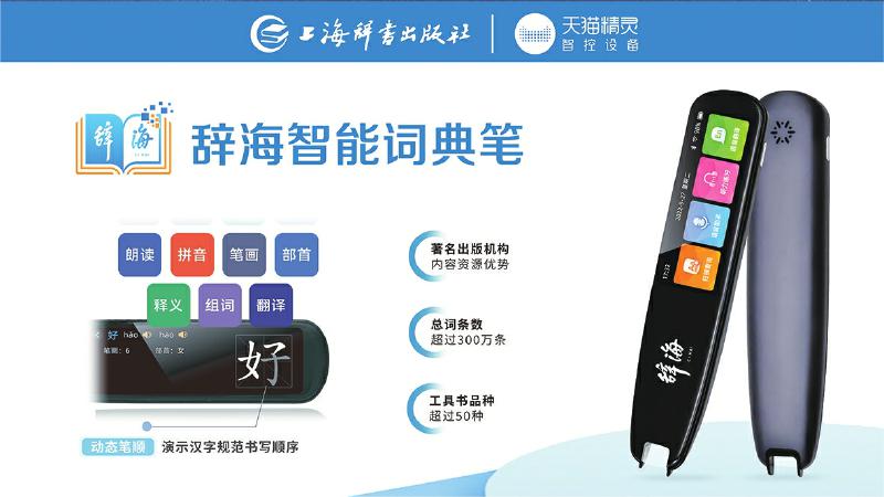為了更好地適應(yīng)用戶在紙質(zhì)閱讀過程中的快速查檢需求,辭書社經(jīng)過數(shù)年設(shè)計(jì)研發(fā),于2022年9月推出辭海智能詞典筆。詞典筆充分依托聚典平臺(tái)積累的海量?jī)?nèi)容資源,將1.6億字裝進(jìn)一支詞典筆,內(nèi)置詞條達(dá)到了300余萬條,收錄了《辭?!罚ǖ谄甙妫┖汀洞筠o?!贰稘h語大詞典》《英漢大詞典》《世紀(jì)漢英大詞典》等國(guó)家級(jí)標(biāo)志性工具書,整合《現(xiàn)代漢語大詞典》《現(xiàn)代漢語規(guī)范詞典》《中國(guó)成語大辭典》《同義詞、反義詞大詞典》等精品工具書,讓用戶每次都能夠查有所得。同時(shí),詞典筆實(shí)現(xiàn)掃讀結(jié)果1秒呈現(xiàn),并融合數(shù)字智能技術(shù),集掃描查詢、語音助手、聽力練習(xí)、語音翻譯、口語測(cè)評(píng)、數(shù)碼錄音、生詞本、文本摘抄等八大功能于一體,實(shí)現(xiàn)一筆多用。