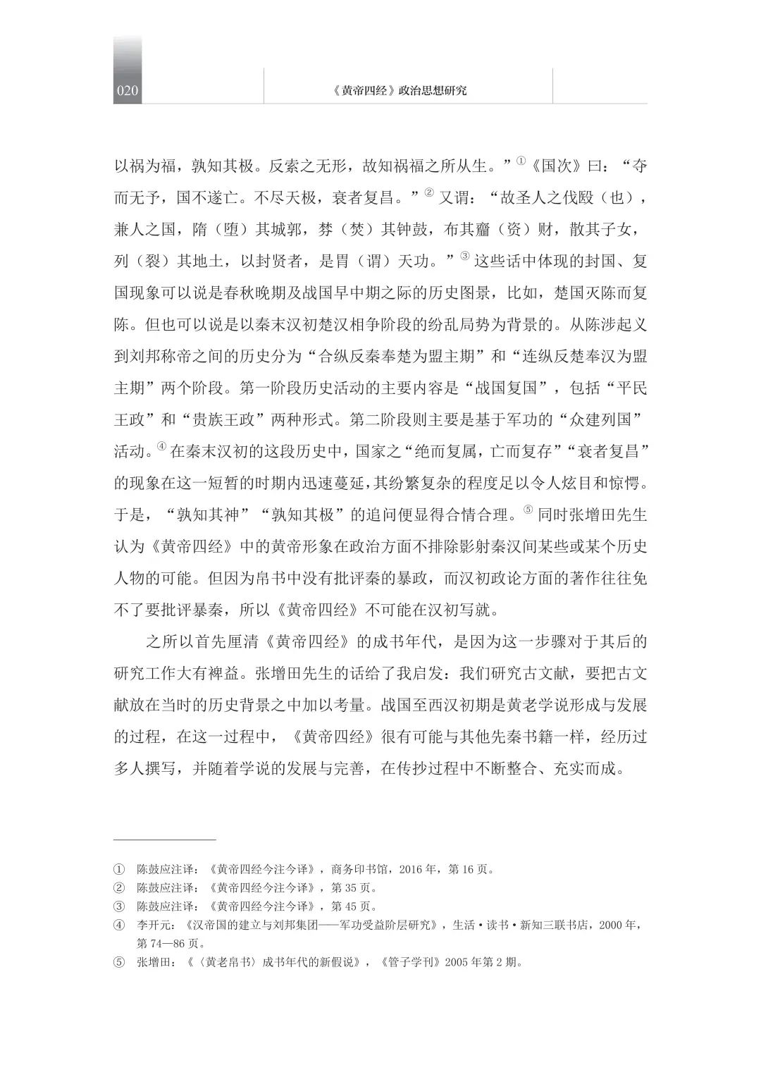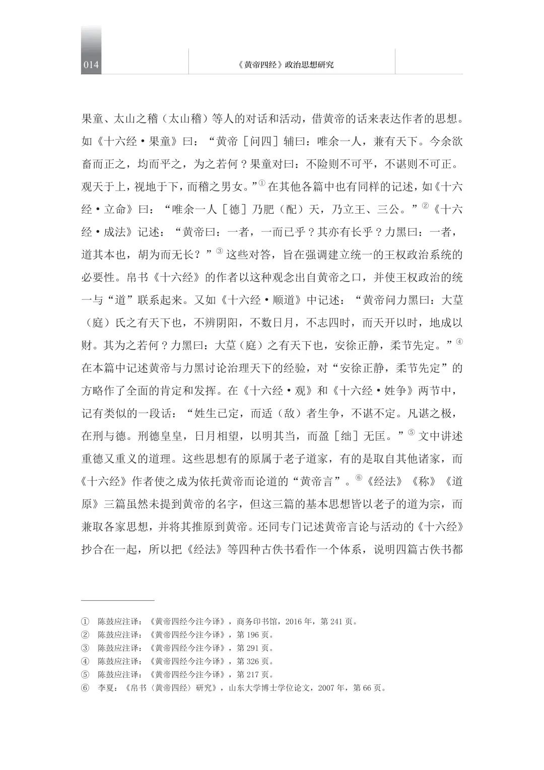 《黃帝四經(jīng)》作為東周之前各朝修身治國(guó)的指導(dǎo)性經(jīng)典,其修身治世功用迄今依然具有極高的現(xiàn)實(shí)意義和指導(dǎo)價(jià)值。本書以《黃帝四經(jīng)》為研究起點(diǎn),重點(diǎn)探索黃老政治思想中的重要概念,并試圖從核心詞匯“道”“德”概念的演變及其相互作用來探究黃老學(xué)說的起源發(fā)展的學(xué)術(shù)邏輯,尤其從“德”含義的拓展與遷移去分析黃老哲學(xué)政治德性的建立,隨之引出黃老政治思想中的重要概念“道法”“刑名”“刑德”“因循”等,并希望由此描摹出黃老政治思想的特性。