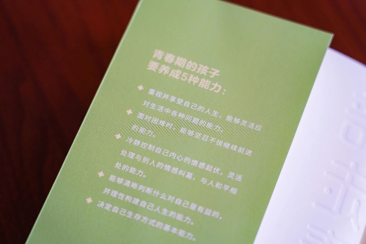 《陪孩子走過青春期》獨(dú)創(chuàng)性地提出“父母幸福是孩子幸福的基石”這一核心理念,認(rèn)為父母給孩子最好的禮物,就是讓自己成為自立且幸福的家長。倡導(dǎo)父母應(yīng)該先關(guān)照自我,提升內(nèi)在力量,才能構(gòu)建溫暖、相互理解、共同成長的親子關(guān)系,營造出滋養(yǎng)孩子也滋養(yǎng)父母的家庭氛圍。