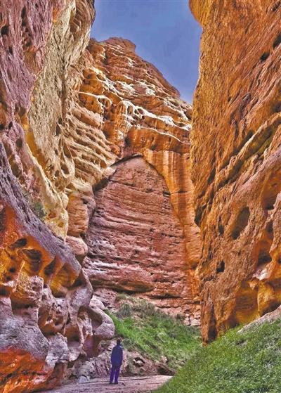 在“云直播”中,蒙古族姑娘有過這樣的描述:平山湖大峽谷海拔高度1500至2550米,其地質(zhì)構(gòu)造屬于紅層地貌,是中生代侏羅紀(jì)至新生代第三紀(jì)沉積形成的“紅色沙礫巖”,距今已有一億八百萬(wàn)年至兩億四千萬(wàn)年。大峽谷從谷底到頂部分布著從寒武紀(jì)到新生代各個(gè)時(shí)期的巖層,層次清晰,色調(diào)各異,并且含有各個(gè)地質(zhì)年代的代表性生物化石,又被稱為“活的地質(zhì)史教科書”。