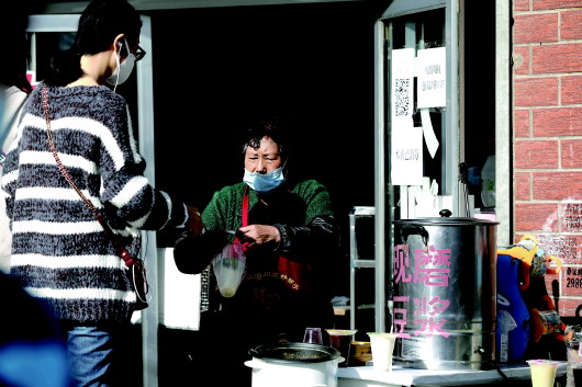 3月22日,在崆峒區(qū)圓通寺路,營業(yè)中的早餐店。記者 楊昕 攝