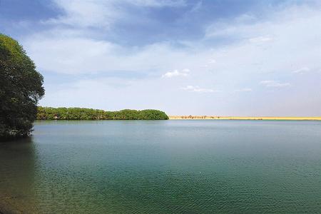 在渥洼池畔舉目遠(yuǎn)眺,在阿爾金山皚皚白雪的映襯下,偌大的渥洼池顯得安靜祥和,廣闊的水域就像一面鏡子,鑲嵌在大漠深處,在陽光的折射下顯得格外深邃而內(nèi)斂。渥洼池畔茂密的灌木林和高大密集的蘆葦蕩,將一汪湖水浸染的泛著黛綠,蘆葦和灌木在湖水滋潤下郁郁蔥蔥,高低錯落有致,大有阡陌縱橫之勢。西岸不遠(yuǎn)處,南北迤邐著一座兩公里有余的沙坡頭,猶如一條盤旋的黃龍,亙在湖水的西邊搖頭擺尾,它曾經(jīng)以每年兩至三米的速度,肆無忌憚地向渥洼池水域逼進。不過,在陽關(guān)保護區(qū)的精心培育下,一片密集的蘆葦,已經(jīng)爬到了沙梁頂上,將這條黃龍死死地鎖在原地,動彈不得。