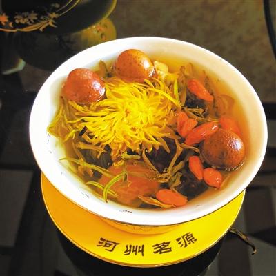 茶盤(pán)里除茶葉之外,還有冰糖、枸杞、桂圓、紅棗、杏干、葡萄干、玫瑰花、菊花等。你可以根據(jù)自己的喜好,選幾樣放在蓋碗里,伙計(jì)用滾滾的“牡丹水”(臨夏對(duì)開(kāi)水的戲稱)挨個(gè)澆在這些蓋碗里,頓時(shí),茶葉、枸杞、紅棗、菊花的香味伴著冰糖的“嗞嗞”聲升騰開(kāi)來(lái)。