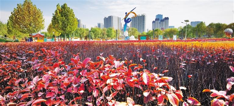 在暖陽的照射下,色彩斑斕的樹葉把這座西北重鎮(zhèn)裝點(diǎn)得多彩絢麗、如詩如畫。人們在公園、在街頭巷尾,享受著無邊的秋色。