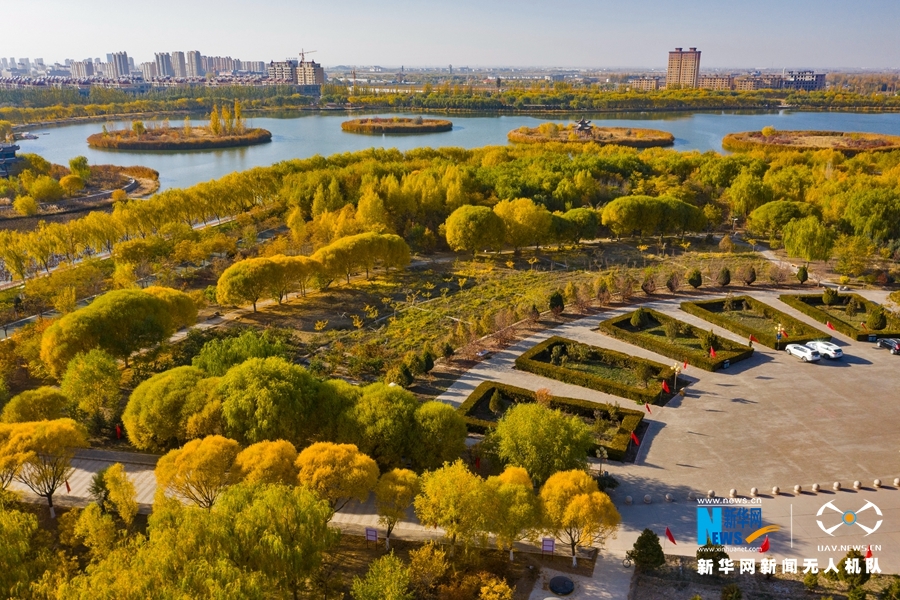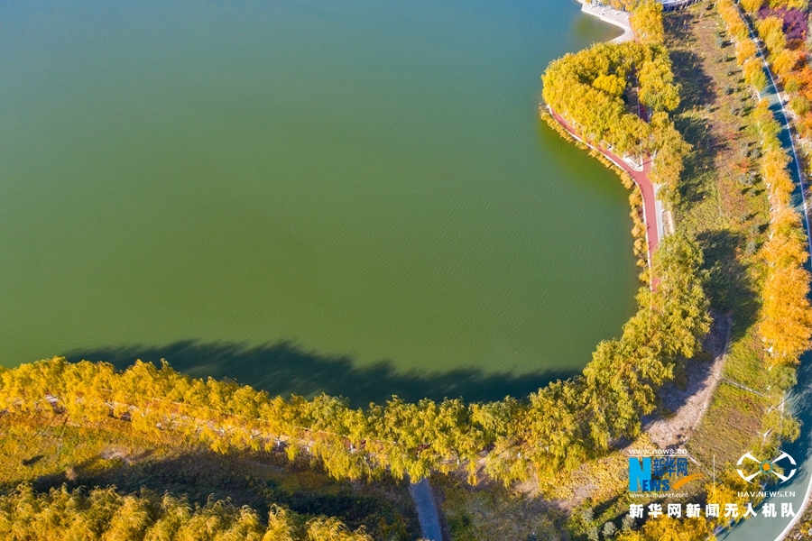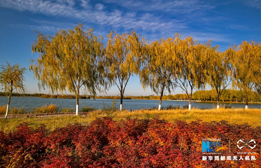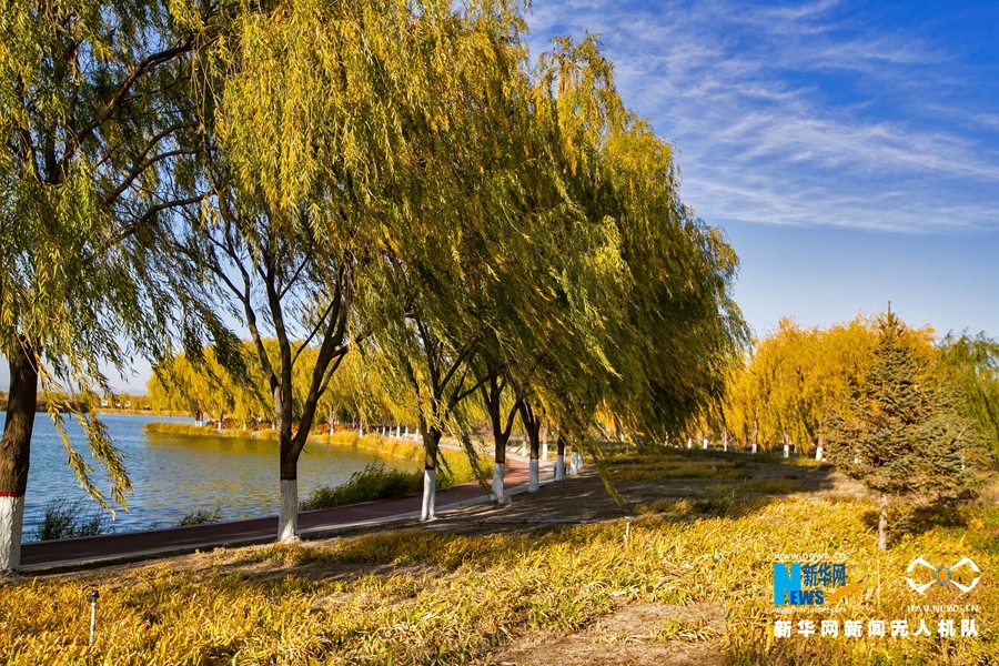 深秋時(shí)節(jié),國家4A級景區(qū)甘肅省張掖潤泉湖公園秋水依依,草木金黃,呈現(xiàn)出一幅斑斕畫卷。新華網(wǎng)發(fā)(成林 攝)
