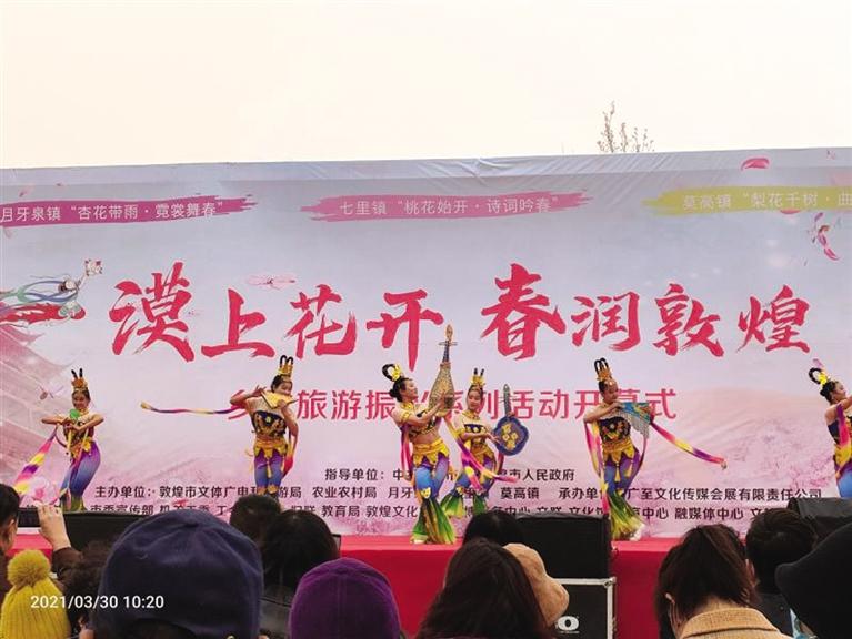 三月的敦煌,春風(fēng)拂面,漠上花開。鳴沙山下,十里杏花爭相綻放;黨河兩畔,千畝桃花含苞待放;春風(fēng)蕩漾,早酥梨基地花苞滿枝丫。鮮花以自己的嬌媚打開了戈壁大漠的春天。敦煌市將以“春”為韻腳,“花”為主角,開展“漠上花開·春潤敦煌”鄉(xiāng)村旅游振興系列活動。包括“杏花帶雨·霓裳舞春”“桃花始開·詩詞吟春”“梨花千樹·曲藝鬧春”3場主場活動,以及徒步踏青、康體騎行、研學(xué)體驗等5項主題活動,并將組織開展敦煌服走秀、桃花詩會、非遺曲子戲表演等多項鄉(xiāng)村旅游特色配套活動。