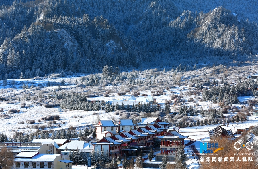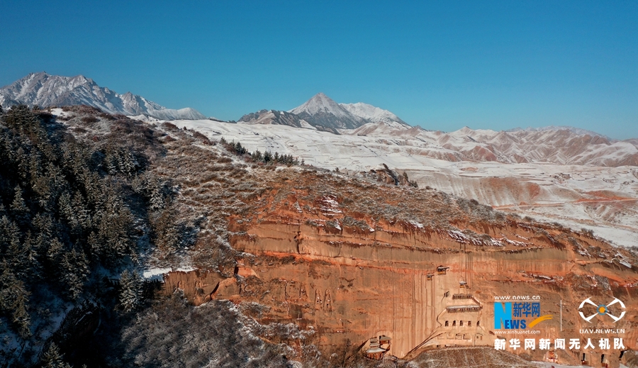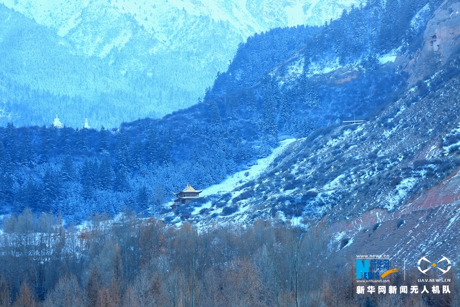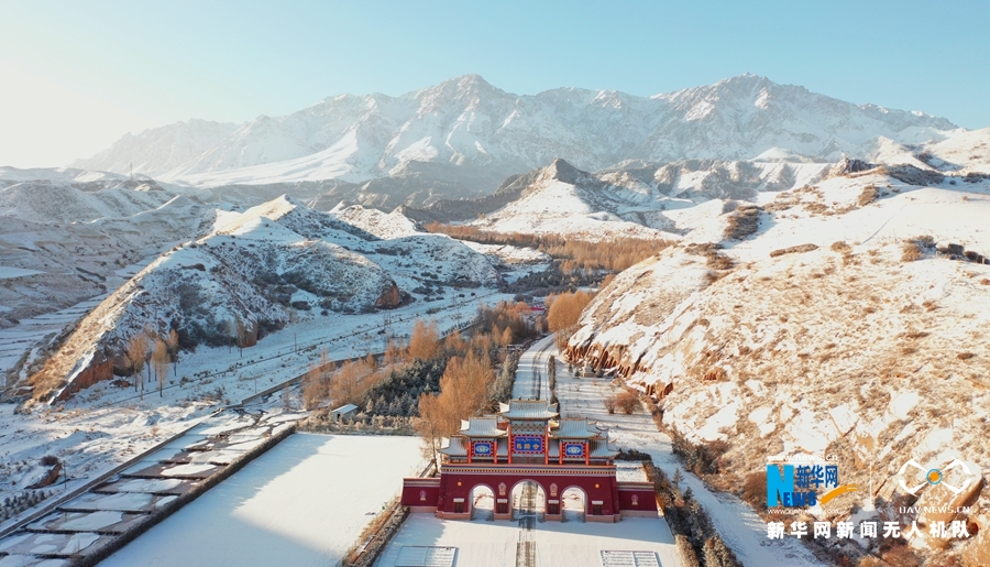 這是11月21日航拍的甘肅省張掖市肅南裕固族自治縣馬蹄寺風(fēng)景區(qū)雪景。新華網(wǎng)發(fā)(楊永偉 攝)