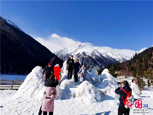 在達(dá)古湖和情人灘,攜手親密戀人共同度過(guò)了浪漫冬日時(shí)光;與朋友和家人,在洛格斯神山腳下,許下了新年最美好的期許;再去山腳逗弄藏酋猴,親人又可愛(ài),讓不少游客連連喊道:“好可愛(ài)的猴子!”
