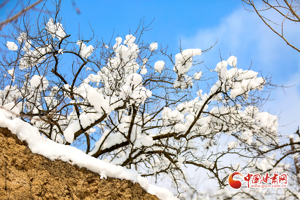 2月8日,雪過天晴,甘肅省平?jīng)鍪徐o寧縣賈河鄉(xiāng)侯山村銀裝素裹,美不勝收。果園、梯田、房屋、公路及遠山構(gòu)成了一幅天然的鄉(xiāng)村畫卷。