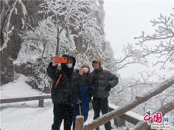 “哇! 好漂亮??!”2月17日,安徽黃山風景區(qū)再次迎降春雪,驚羨慕名前來賞雪的游客。