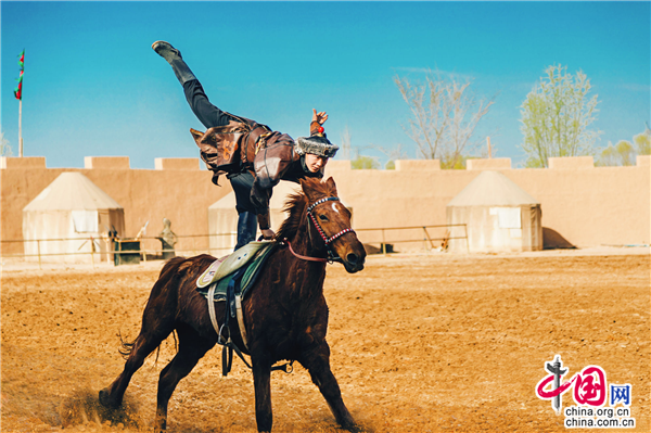 除此之外,游客在景區(qū)擂臺(tái)處不僅能夠觀看驚險(xiǎn)刺激的市井雜耍,還有每天兩場(chǎng)的樂(lè)隊(duì)表演不容錯(cuò)過(guò)。擂臺(tái)不遠(yuǎn)處就是今年4月1日全新推出的實(shí)景馬戰(zhàn)《烽火西夏》演出場(chǎng)地,看完雜耍的游客可直接到馬場(chǎng)觀看接下來(lái)的演出。