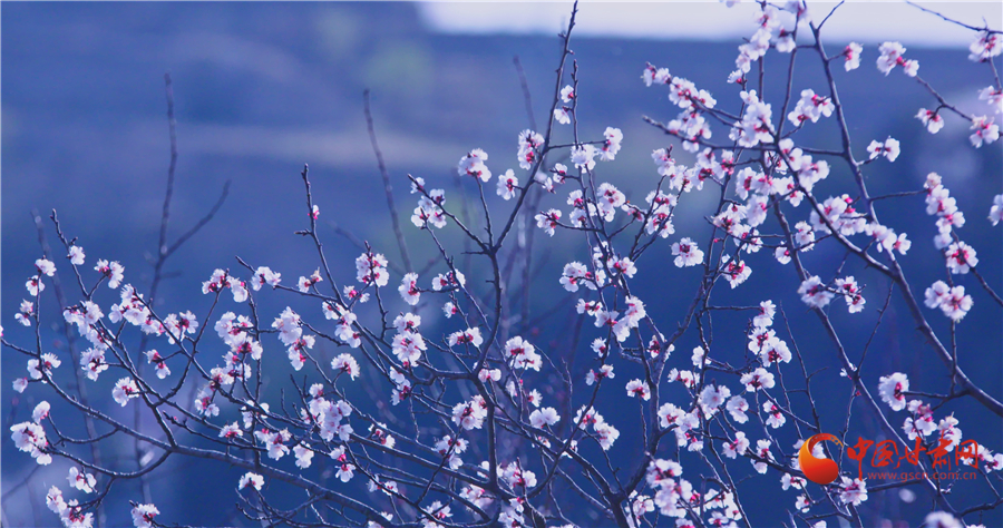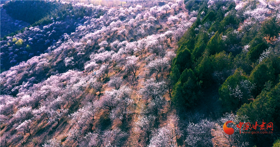 榆中縣車道嶺千畝杏花次第開放。