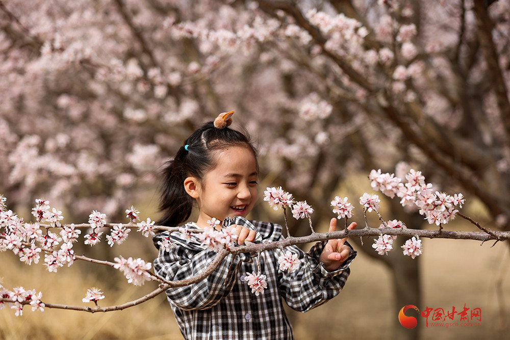 在肅州區(qū)金佛寺鎮(zhèn)的觀山口連片杏林看到,漫山遍野的杏花粉如胭脂,白如脂玉,格外嬌艷,把戈壁深處的小山村裝點得美若仙境,吸引了眾多周邊的市民游客前來賞花踏青。