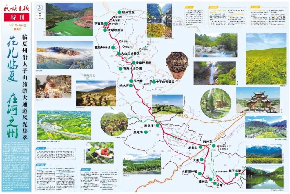 太子山沿線是臨夏自然風(fēng)光、人文景觀的集萃地。近年來,州委州政府在打造臨夏文旅百億產(chǎn)業(yè)時,創(chuàng)新性地打造出“沿太子山旅游大通道”黃金線路。該線路全長286公里,南起蓮花山、北至大河家,涵蓋沿線康樂、和政、臨夏、積石山4縣的28 個鄉(xiāng)鎮(zhèn)、4個國有林場,已成為一條環(huán)臨夏州旅游公路網(wǎng)線。