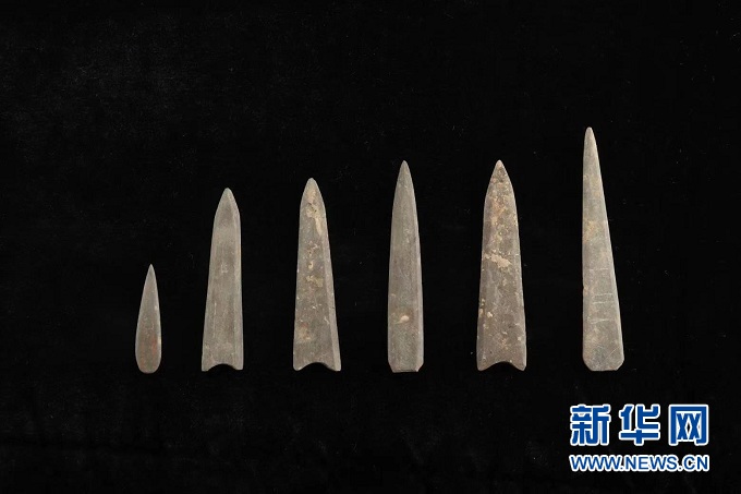 這是甘肅慶陽南佐遺址出土的涂有朱砂的石鏃。(圖片由南佐遺址聯(lián)合考古隊(duì)提供)