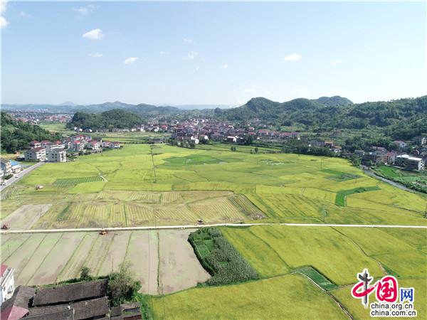 湖南新邵:早稻進入全面收割階段 田園如詩如畫