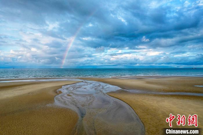 圖為雨后彩虹立于海天之間。 徐紹榮 攝