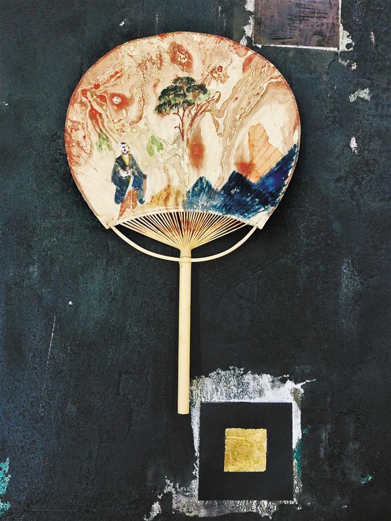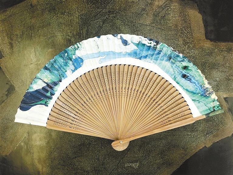 據(jù)劉志剛介紹,漆扇是使用漆藝中的“漂漆”技法,利用了漆不溶于水的特質(zhì),以點、甩、彈、劃等手法,在水面繪出圖案效果。這樣制作出的扇面,都是獨一無二的。