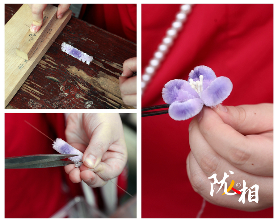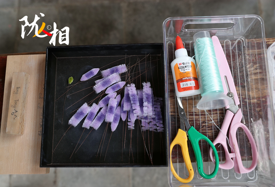 “我也在不斷學(xué)習(xí),現(xiàn)在可以用仿點翠工藝,讓簪花更有質(zhì)感。”宗怡彤說道。