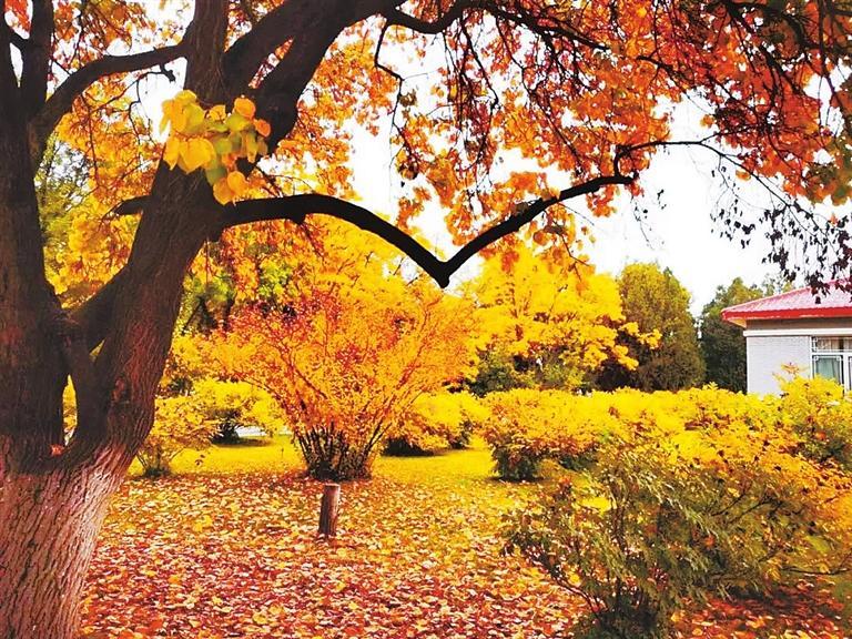 微風(fēng)輕拂,嬌黃的樹葉紛紛飄落,陽光透過葉片滲出幾分清朗,這是專屬秋的浪漫。隨便鋪開畫紙,蘸取一點點秋色,藍(lán)天、紅墻、金葉……都是最美的色調(diào)。古樸靜雅的校園彌漫著秋思,斑駁的陽光灑在圖書館的墻上,在濃濃的書卷氣中把農(nóng)歷十月寫進(jìn)秋的詩行,有思念、有沉淀、有墨香……蘭州“醉”美的大學(xué)校園,每一片落葉都是美的化身,綿延了時光,溫情了步履……