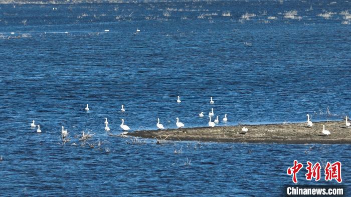 博湖縣境內的博斯騰湖白鷺洲迎來大批天鵝?!∧昀?nbsp;攝