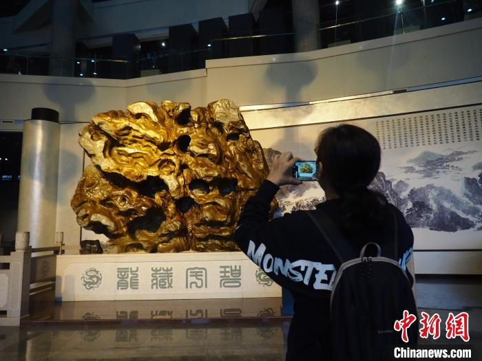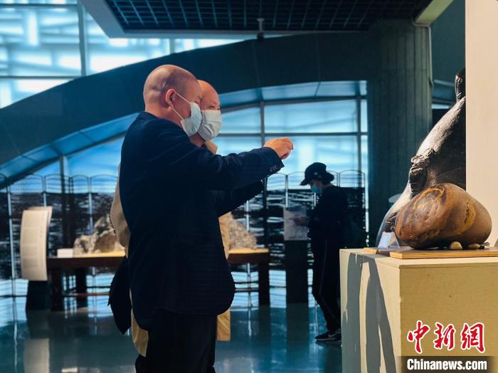 圖為一位參觀者用手機(jī)拍攝奇石。李嬌陽(yáng) 攝