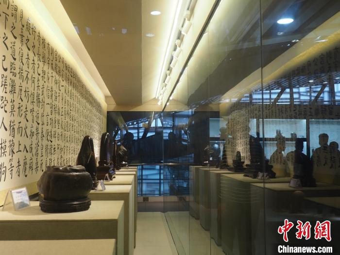 圖為參觀者隔著玻璃展柜觀賞奇石。李嬌陽(yáng) 攝