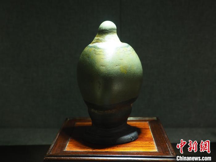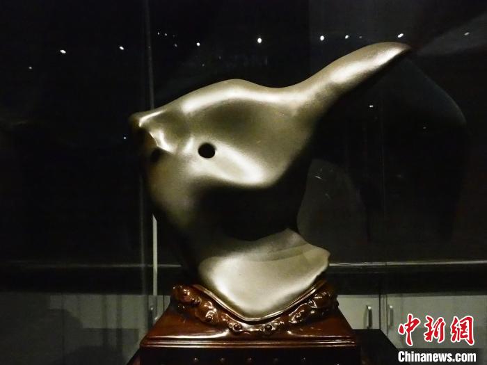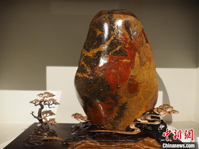 圖為現(xiàn)場(chǎng)的一塊奇石展品形如瓷瓶。李嬌陽(yáng) 攝