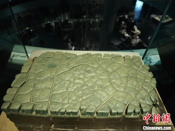圖為現(xiàn)場(chǎng)展出的一塊奇石宛如碧綠的田地。李嬌陽(yáng) 攝