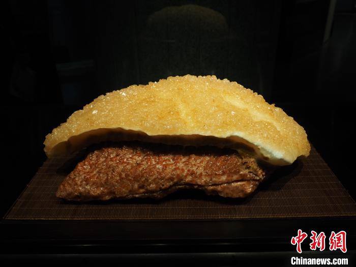 圖為現(xiàn)場(chǎng)的一塊奇石展品形貌如同泛著油光的豬肉。李嬌陽(yáng) 攝