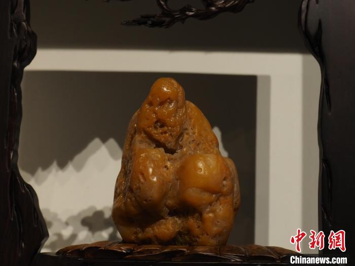 圖為現(xiàn)場(chǎng)展出的一塊奇石形似和尚。李嬌陽(yáng) 攝