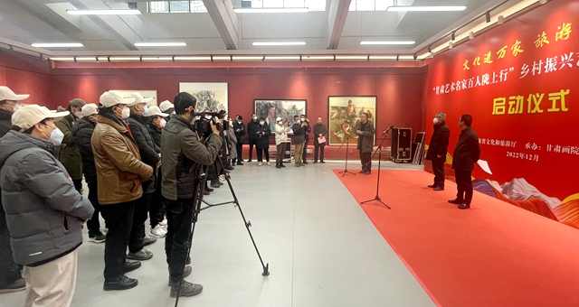 12月17日上午,“甘肅藝術(shù)名家百人隴上行”鄉(xiāng)村振興藝術(shù)創(chuàng)作工程采風(fēng)活動在甘肅畫院正式啟動,來自全省各地的藝術(shù)家從蘭州黃河之濱,奔赴甘南、隴南兩地重點旅游示范村開展創(chuàng)作采風(fēng)活動。省委宣傳部副部長、省文旅廳黨組書記何效祖出席啟動儀式并講話。省文化和旅游廳黨組成員、副廳長萬學(xué)科主持啟動儀式,甘肅畫院院長王萬成,甘肅文旅集團黨委副書記、工會主席王寧等出席啟動儀式。