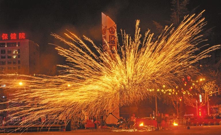 1月24日至26日晚間,河南省洛陽市向陽打鐵花藝術團在天水秦州萬達廣場1號門表演千年絕技“打鐵花”,為群眾奉獻了一場震撼的視覺盛宴。