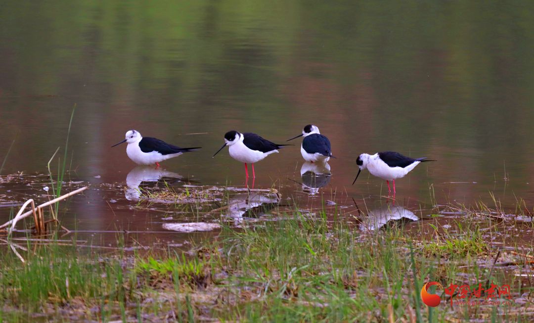 據(jù)了解,這種鳥叫黑翅長腳鷸,是候鳥的一種,春季于4月初至5月初遷來中國北方繁殖地,秋季于9-10月離開北方繁殖地往南遷徙。黑翅長腳鷸是一種涉禽(水鳥中的一類),喜歡成群結隊,淺水而居,以小昆蟲、小魚、蝌蚪等為食。它還是一種惹人喜愛的水鳥,它的嘴細長而筆直,體白翅黑,對比分明,身姿綽約、體態(tài)修長,被譽為“鳥中模特”或者“長腿超模”。