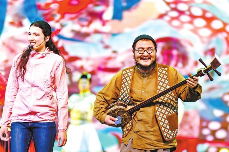 音樂響起,舞蹈《絲路之光》以漢唐雄風(fēng)暢迎四海賓朋,鏗鏘有力的武術(shù)表演《問道崆峒》引發(fā)陣陣掌聲、雜技《生命禮贊》讓觀眾的心懸在了半空中又落下、敦煌復(fù)原服飾秀《絕色敦煌》讓觀眾“沉浸式”感受黃河文化、長城文化、絲路文化的交融與碰撞。演員們身著民族服飾載歌載舞集中展示甘肅省少數(shù)民族的獨(dú)特人文風(fēng)情和各族人民對美好生活的禮贊。除此之外,甘肅本土民謠音樂人張尕慫和英國音樂人肖恩聯(lián)合創(chuàng)作的《我畫個(gè)甘肅給你看》,通過音樂舞蹈向海內(nèi)外游客發(fā)出暢游如意甘肅的誠摯邀請。