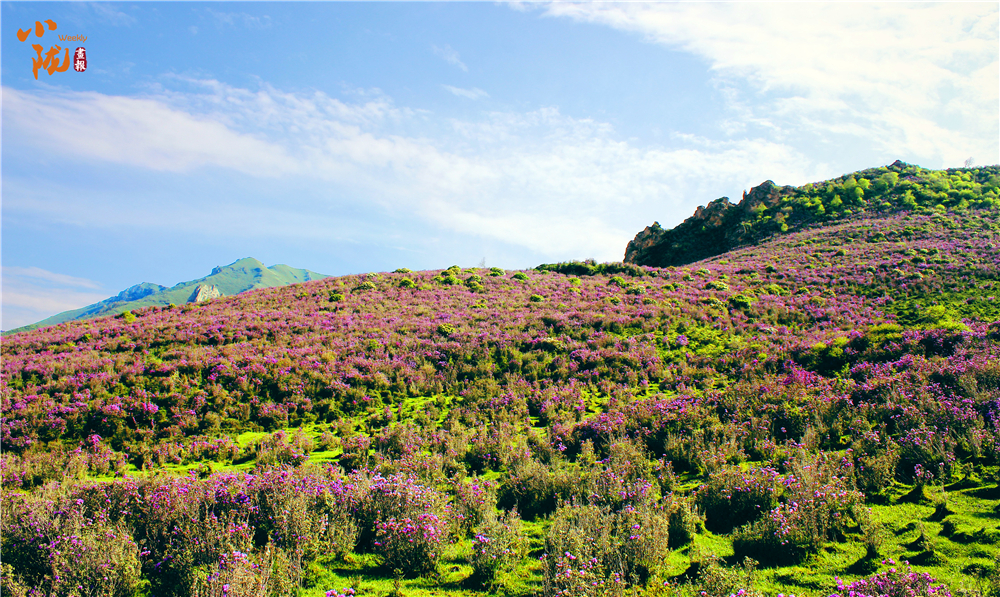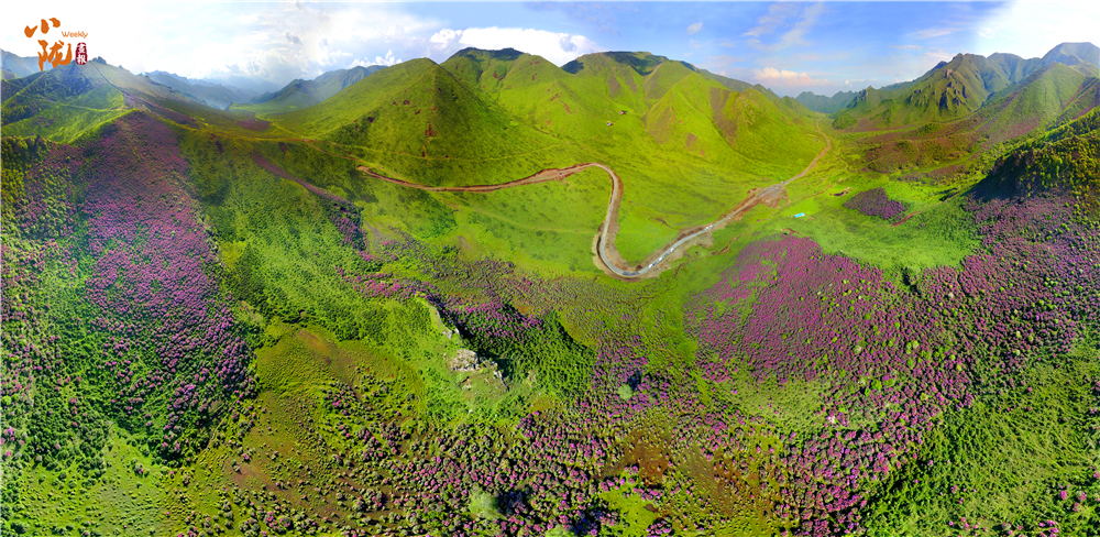 如火如荼綻放的紫色花朵是千里香杜鵑花,在當(dāng)?shù)赜直环Q為枇杷花,每年五、六月份,正值高山杜鵑怒放,形態(tài)各異,色彩斑斕,形成了壯觀、獨特的高山花海景觀。