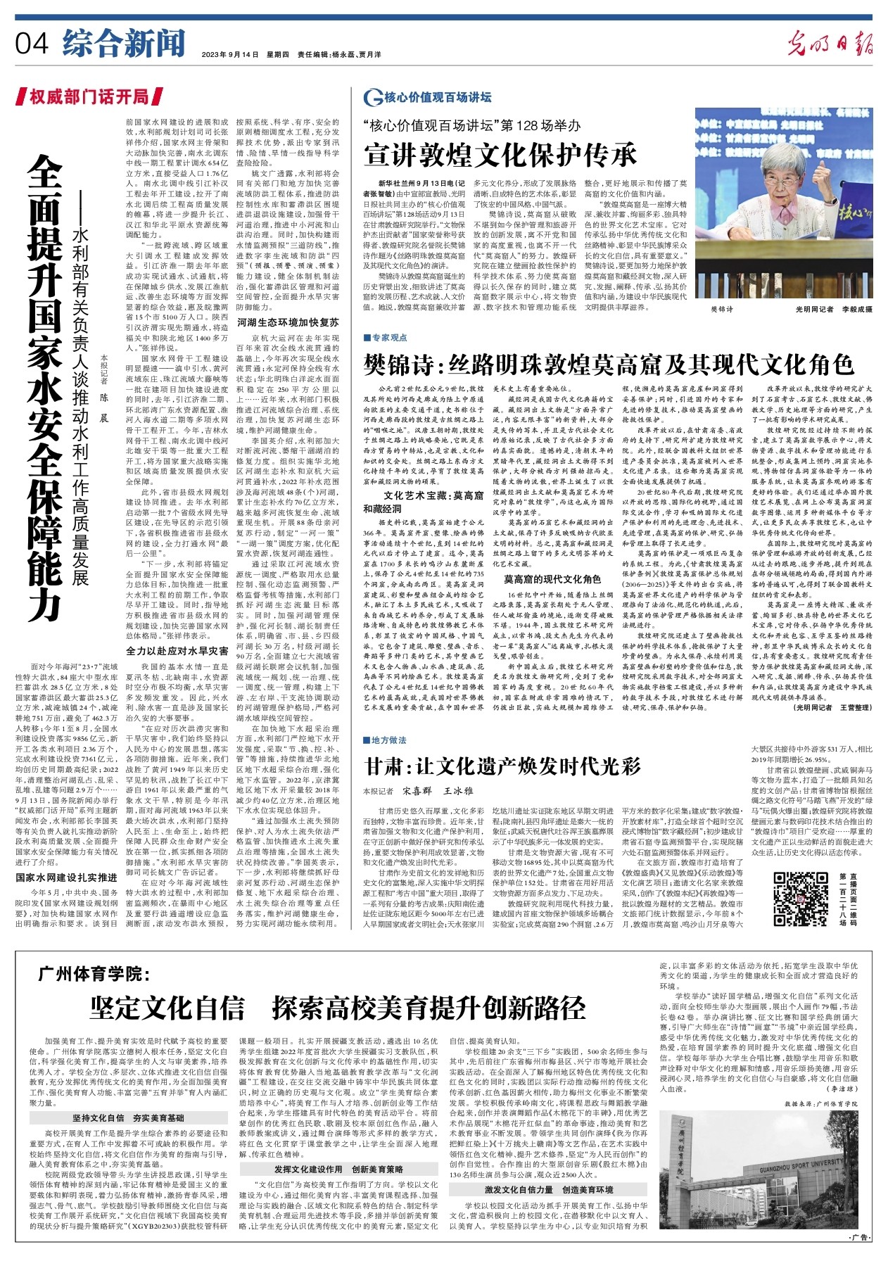 新華社蘭州9月13日電(記者 張智敏)由中宣部宣教局、光明日報(bào)社共同主辦的“核心價(jià)值觀百場講壇”第128場活動9月13日在甘肅敦煌研究院舉行。“文物保護(hù)杰出貢獻(xiàn)者”國家榮譽(yù)稱號獲得者、敦煌研究院名譽(yù)院長樊錦詩作題為《絲路明珠敦煌莫高窟及其現(xiàn)代文化角色》的演講。