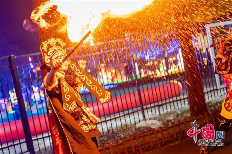 民族的才是世界的,輕輕一轉(zhuǎn),就是一張臉譜;水袖一甩,就是驚聲一片。高蹺、變臉、噴火……燈火映襯下是一代代傳承的國(guó)粹表演。