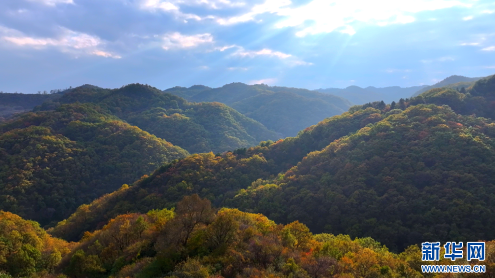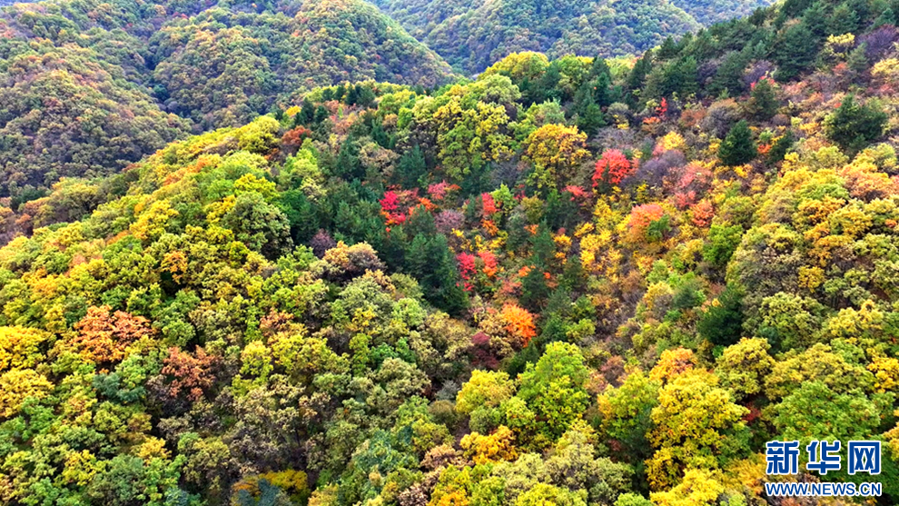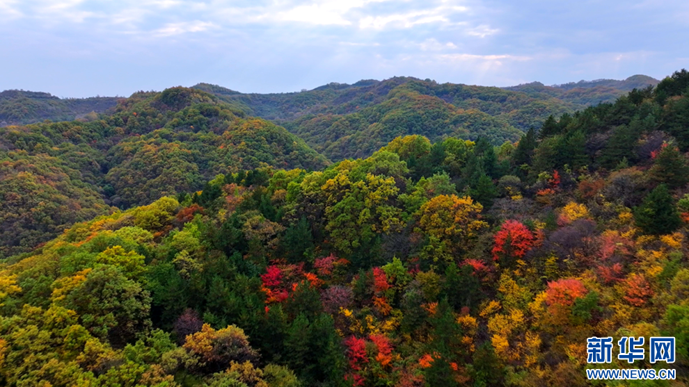 深秋時節(jié),甘肅省平涼市崇信縣的唐帽山層林盡染,群山疊彩,勾勒出一幅絢麗多姿的美景圖。(圖片:高亮 文字:關改琴)