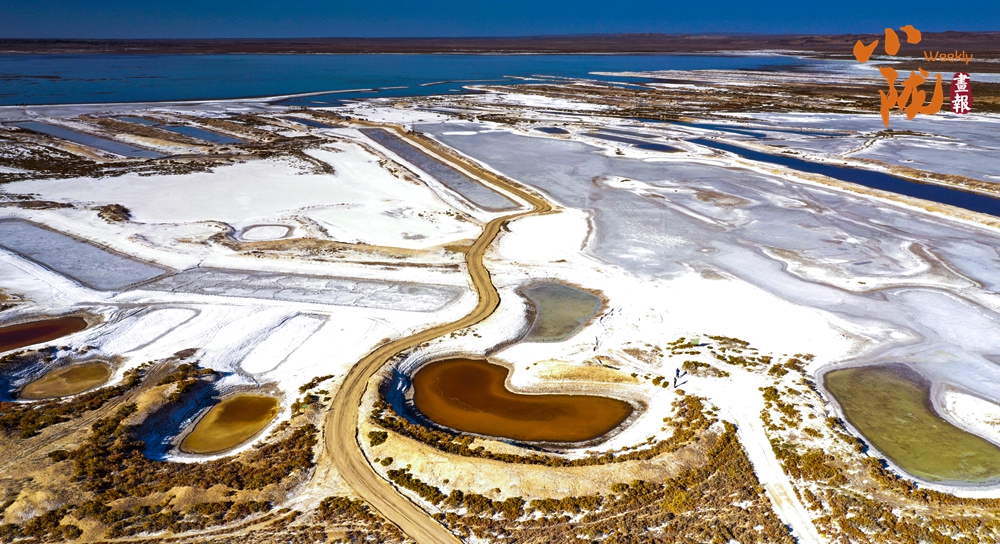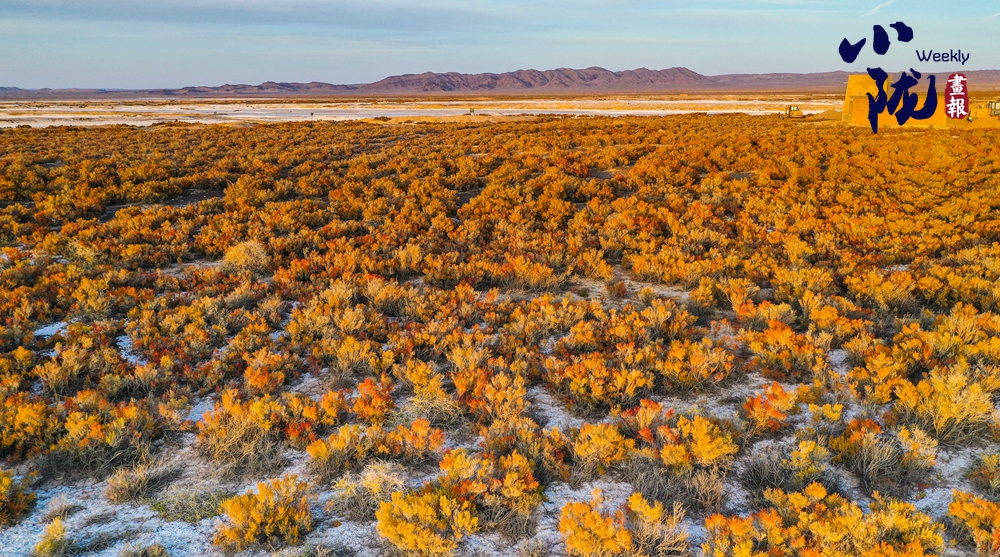 大大小小、星羅棋布的濕地如同彩色顏料潑灑在白茫茫的戈壁灘上,大片大片的堿蓬草逐漸褪去綠衣,裹上了絢麗的秋裝。