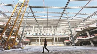 在豐臺火車站南側(cè),數(shù)百名工人正在火熱施工中,豐臺火車站交通樞紐的鋼結(jié)構(gòu)骨架已經(jīng)“沖出”地面。昨天,據(jù)首發(fā)集團公聯(lián)公司消息,去年年底,豐臺火車站交通樞紐的南樞紐和北樞紐均已完成主體結(jié)構(gòu)施工。目前,正在進行辦公樓外立面幕墻及室內(nèi)裝修施工。力爭今年年底實現(xiàn)全面完工。