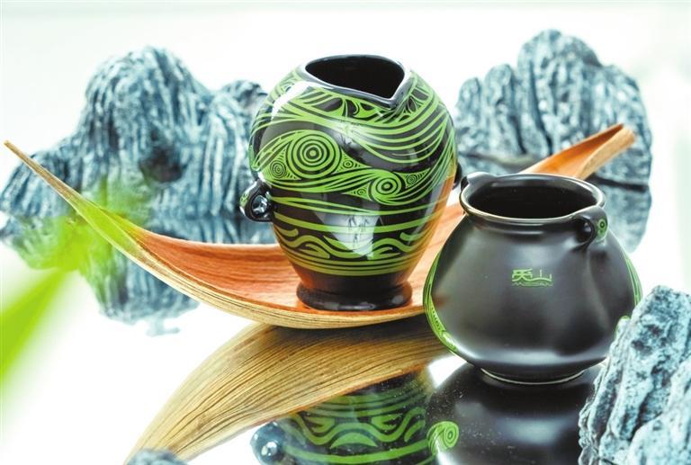 “馬家窯彩陶杯”的色彩設計也有創(chuàng)新之舉。李思成告訴記者:“為了能將古老神秘的彩陶紋樣與當下年輕審美結(jié)合,決定選擇更貼近自然風情的綠色線條,采用黑瓷,更能凸顯器皿的質(zhì)感。就這樣,既保留文化底蘊的同時,又賦予了它全新的質(zhì)感,在視覺上更具有沖擊力。”