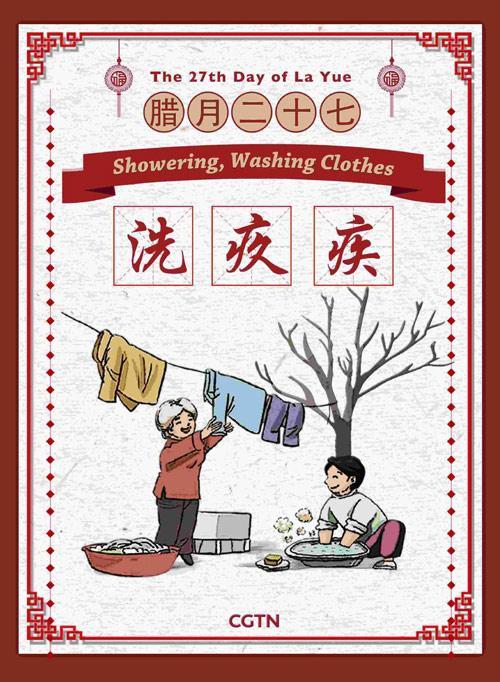 臘月二十七,人們會(huì)洗衣、沐浴或洗澡。這代表著洗掉過去一年所有的晦氣,讓來年百病不生。