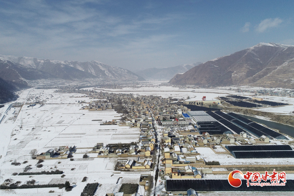 受冷空氣影響,岷縣近日迎來降雪天氣,十里鎮(zhèn)境內(nèi)銀裝素裹,村莊與洮水、山脈構(gòu)成了一幅美麗的冬景畫卷。