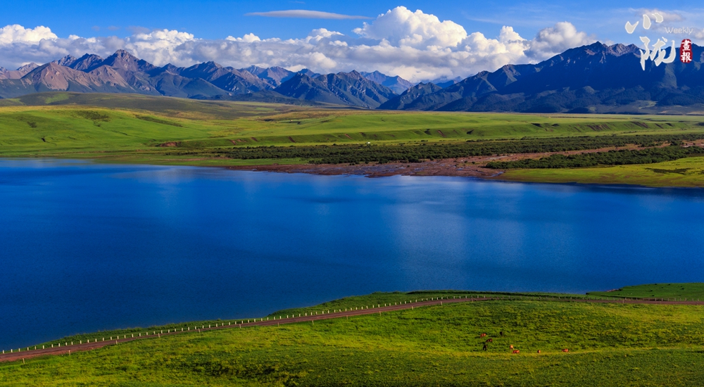 在祁連山北麓的山腳下,有一片水草最為豐美的草原——祁連山草原。每到夏季,綠毯似的草原一直延伸至祁連山腳下,一群群牛羊點綴其中,遠處的祁連山白雪皚皚,直聳天際,一片田園牧歌式的靜謐。
