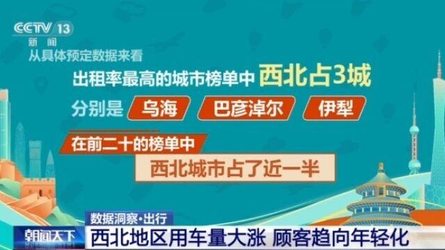 在地域上,可以看到今年西北地區(qū)的用車量大漲,而且涌入了大量的年輕客戶群體。從具體預(yù)訂數(shù)據(jù)來(lái)看,在出租率最高的城市榜單中,西北占了3城:分別是烏海、巴彥淖爾、伊犁。而在前二十的榜單中,西北城市占了近一半。