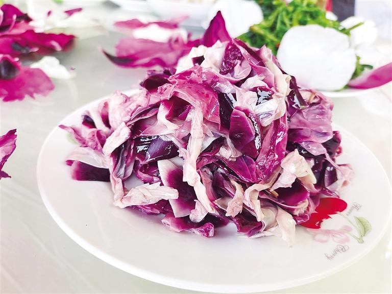 花瓣落下可以吃,與吃榆錢一樣,原汁原味,因品種差別,有的略甜、有的微苦、有的則帶點(diǎn)清香。涼拌則不僅依舊保留花香,菜品也好看。